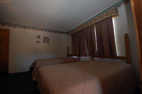 room has two full beds. Downstairs there is a futon.