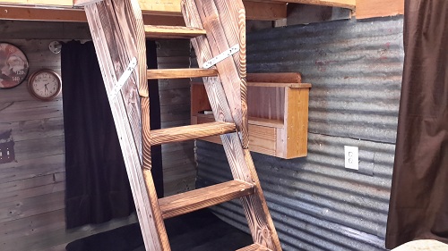 - Queen bed in small loft & one bath with